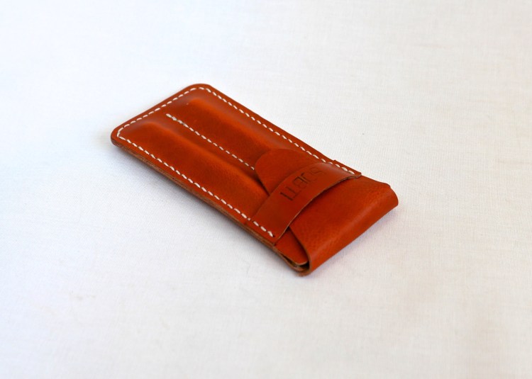 Handmade Italian vegetable tanned leather Executive Pen Sleeve. Made from semi-soft leather around 1,5-2 mm thick and sourced from tanneries registered with the Italian vegetable tanned leather consortium and, saddle stitched by hands (thus it has a rough and raw look / finishing), using the finest cotton waxed thread sourced from Italy.