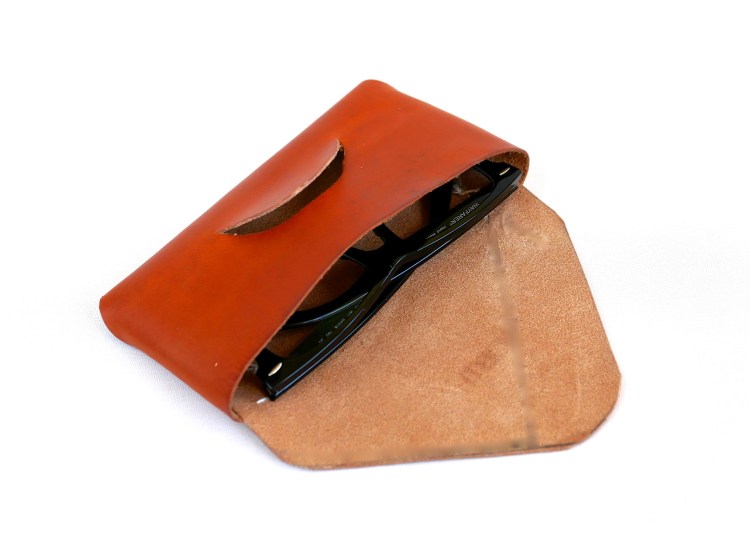 Handmade Italian vegetable tanned leather Classic Eye-wear / Sunglass Sleeve. Made from semi-soft leather around 1,5-2 mm thick and sourced from tanneries registered with the Italian vegetable tanned leather consortium and, saddle stitched by hands (thus it has a rough and raw look / finishing), using the finest cotton waxed thread sourced from Italy.
