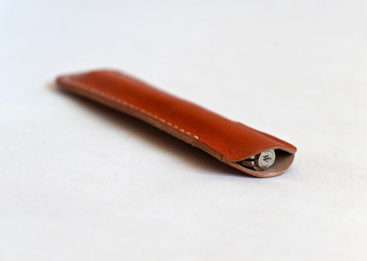 Handmade Italian vegetable tanned leather Classic Pen Sleeve. Made from semi-soft leather around 1,5-2 mm thick and sourced from tanneries registered with the Italian vegetable tanned leather consortium and, saddle stitched by hands (thus it has a rough and raw look / finishing), using the finest cotton waxed thread sourced from Italy.