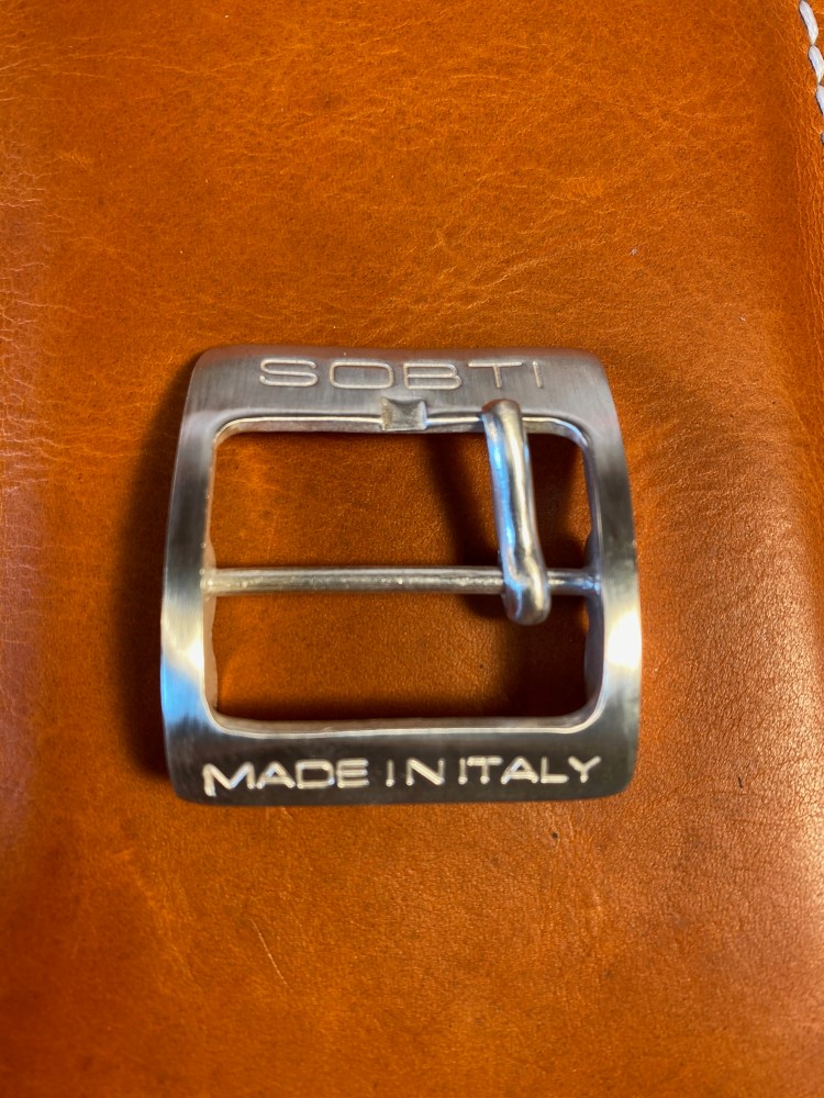 The bag is made using the finest Italian vegetable tanned leather, sourced from tanneries registered with the Italian vegetable tanned leather consortium and, its around 1,5-2 mm thick, and saddle stitch by hands (thus, it has a raw and rough look / finishing), using the finest cotton waxed thread, sourced from Italy. And, it has a handmade Sterling Silver 925 buckle, handmade by Paolo Lapini from Florence in Italy.