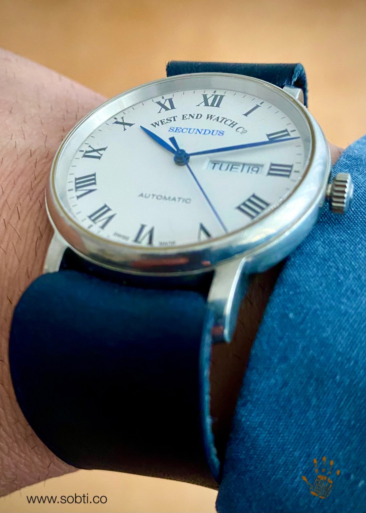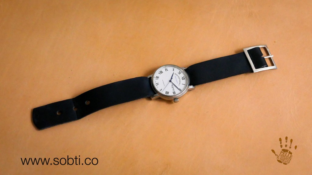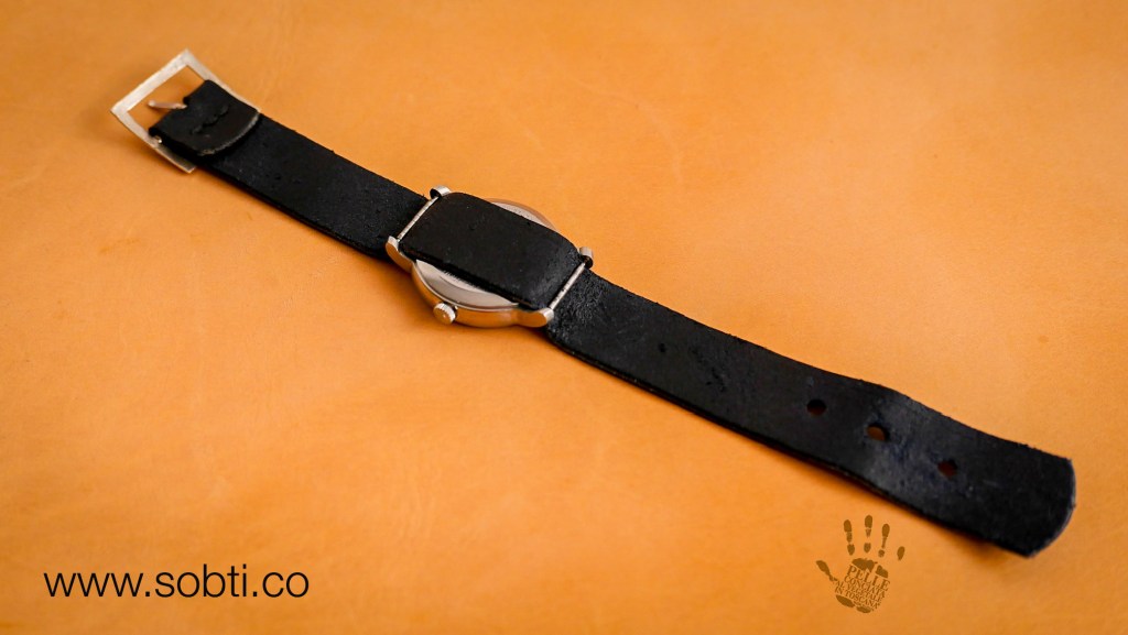 The strap sample presented for this offer, does not include the Swiss Watch. The Watch is used only for presentation. This strap is handmade by hands, meaning, no part of the strap is made / finished using any machine, hence, the strap has a raw and rough look with uneven stitching, as a mark of an artist.
