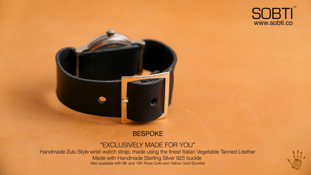 We can also craft this strap with exotic skins, and handmade buckles of Sterling Silver 925, and even 9k and 18k Rose Gold and or Yellow Gold. Please write to us to know more about our exotic skin collections and Silver and Gold buckles.